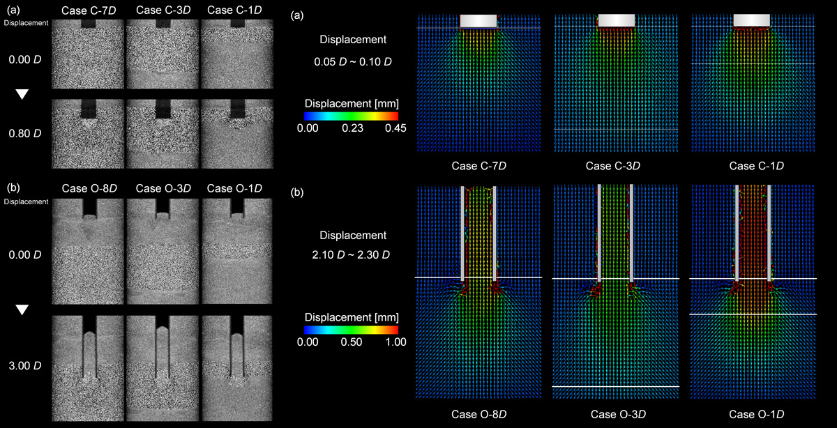 For a structure to remain stable on the ground, it is essential that the pile foundations supporting it exhibit sufficient bearing capacity. The bearing capacity of a pile foundation is developed through the interaction between the ground and both the pile tip and shaft; therefore, accurately understanding this mechanism can contribute to improving the accuracy of bearing capacity estimation and rationalizing design methods. This study aims to elucidate the microscopic interactions between piles and the surrounding ground—interactions that are normally difficult to observe—such as the deformation behavior of soil at the pile tip and along the shaft, and to interpret their relationship with bearing capacity characteristics. In addition, efforts are being made to develop technologies that enhance the bearing capacity of existing piles by incorporating ground improvement techniques.