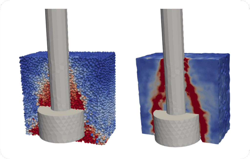 構造物が地盤上で安定するためには,それを支える杭基礎が十分な支持力を発揮することが重要です.杭基礎の支持力は,杭先端および周面との地盤の相互作用によって発揮されるため,そのメカニズムを正確に把握できれば,支持力推定の高精度化や設計法の合理化に寄与すると考えられます.本研究では,通常は観察が困難な杭と地盤のミクロな相互作用(例えば杭先端や周面における土の変形特性)を解明し,支持力特性との関係を解釈することを目指します.また,地盤改良技術を取り入れて,既存杭の支持力を向上させる技術開発にも取り組んでいます.