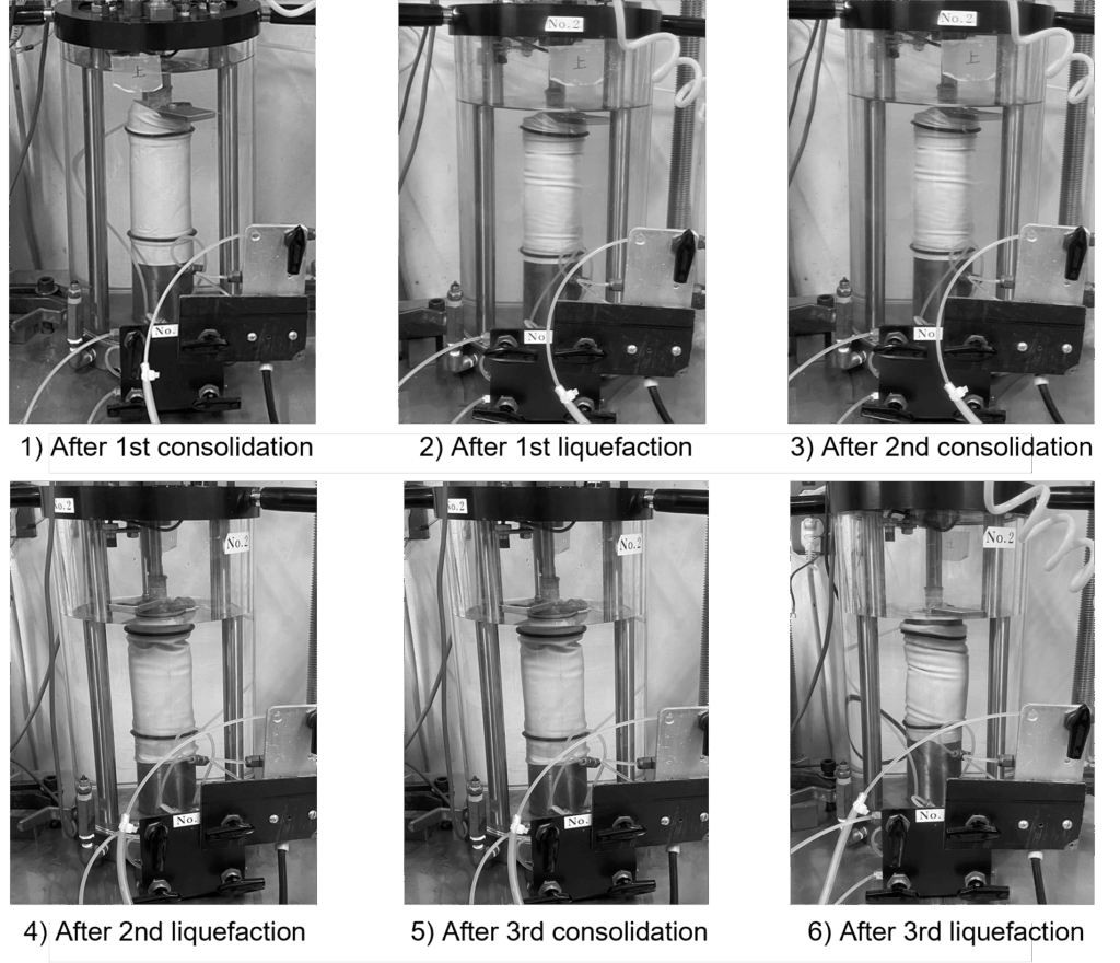 2011年の東日本大震災や2024年の能登半島地震では,繰り返しの地震動により同一地点で複数回の液状化(再液状化)が発生し,住宅地や港湾・沿岸部を中心に甚大な被害が生じました.このような再液状化の発生を防止し,あるいは発生時の被害を軽減するための技術開発は喫緊の課題です.本研究では,再液状化発生のメカニズム解明と,その抑制法について研究しています.